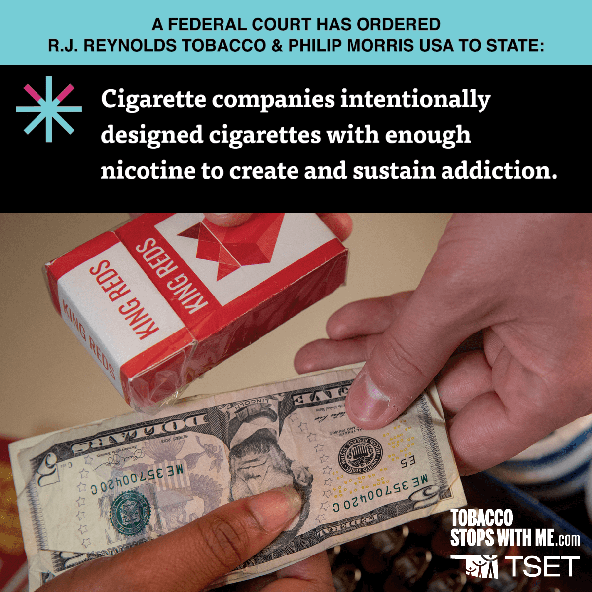 media messaging & videos Corrective Statements videos Social Posts Social Graphics Print Ads One Sheeter Videos Nicotine Low Tar Health Addictiveness Secondhand Smoke Health Effects :06s Secondhand Smoke :06s Low Tar :06s Nicotine :06s Addictiveness :06s Courtroom “Nicotine” Courtroom “Lies” Social Posts download the image Have you seen Big Tobacco’s court-ordered punishment in gas stations? Click to copy download the image Big Tobacco is finally forced to tell the truth and publicly admit their guilt. https://bit.ly/BTguilty Click to copy download the image After years of breaking civil racketeering laws, Big Tobacco is being punished. https://bit.ly/BTguilty Click to copy Social Graphics Print Ads Point of Sale Corrective Statements One Sheeter Download